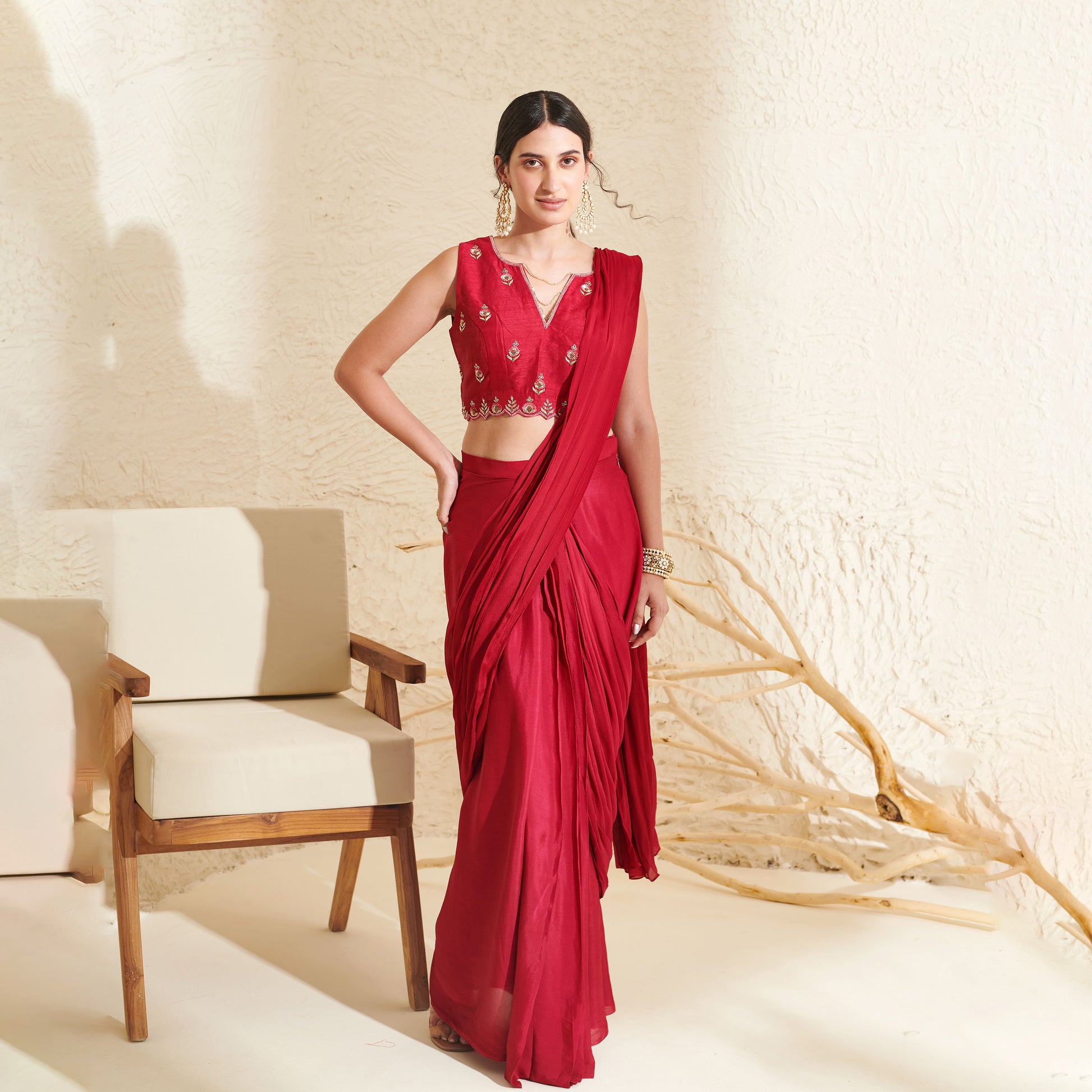 Magenta Pleated Saree