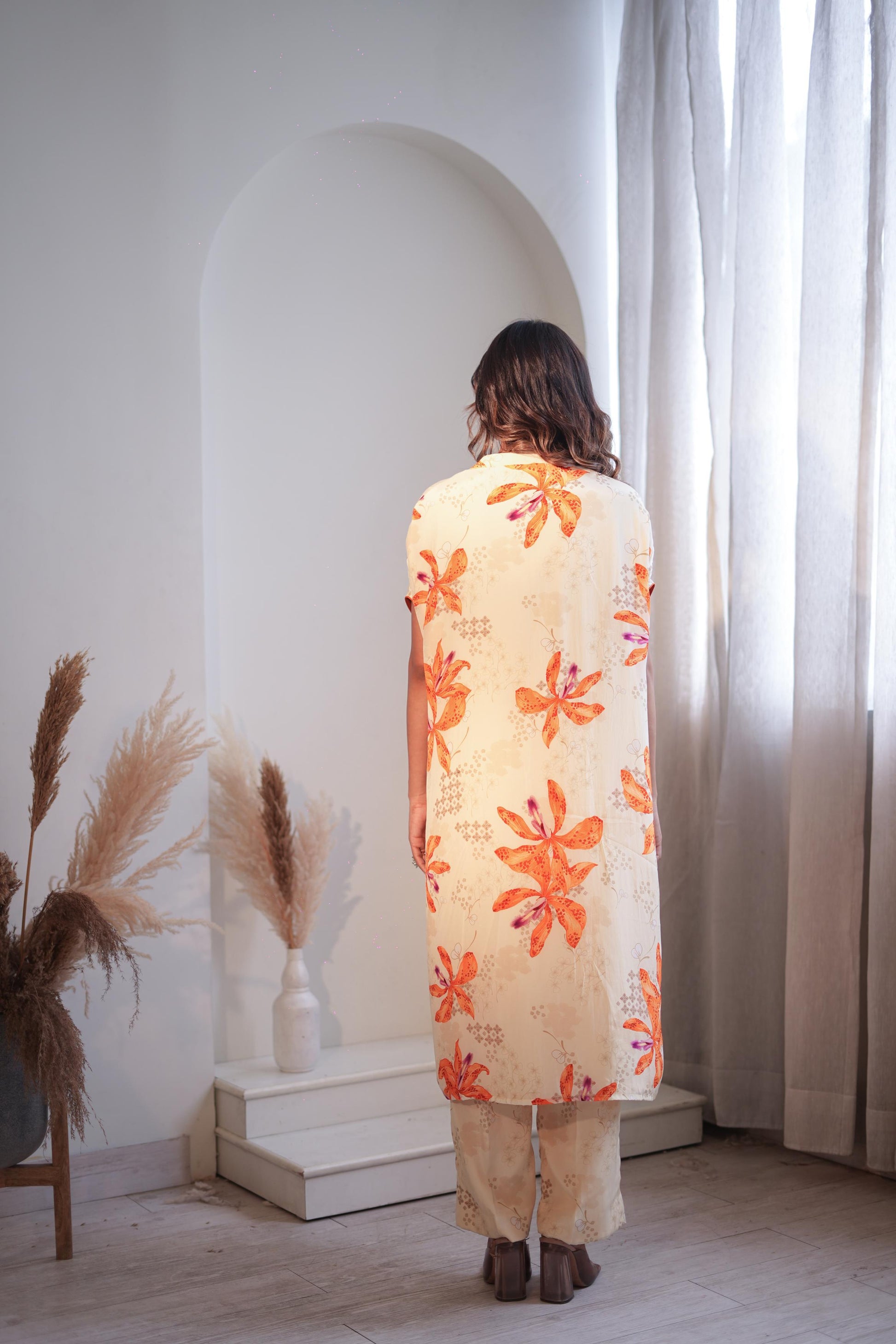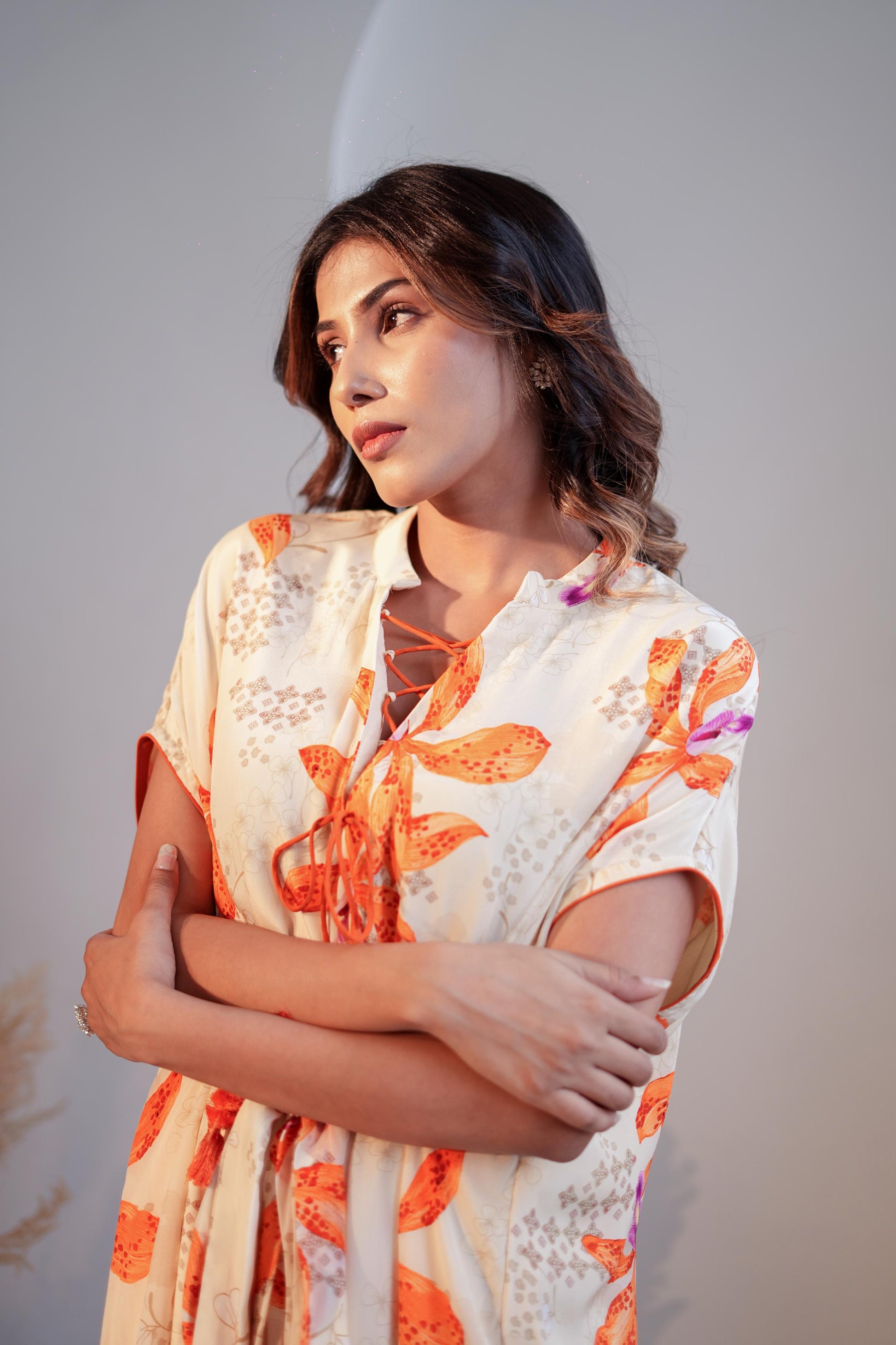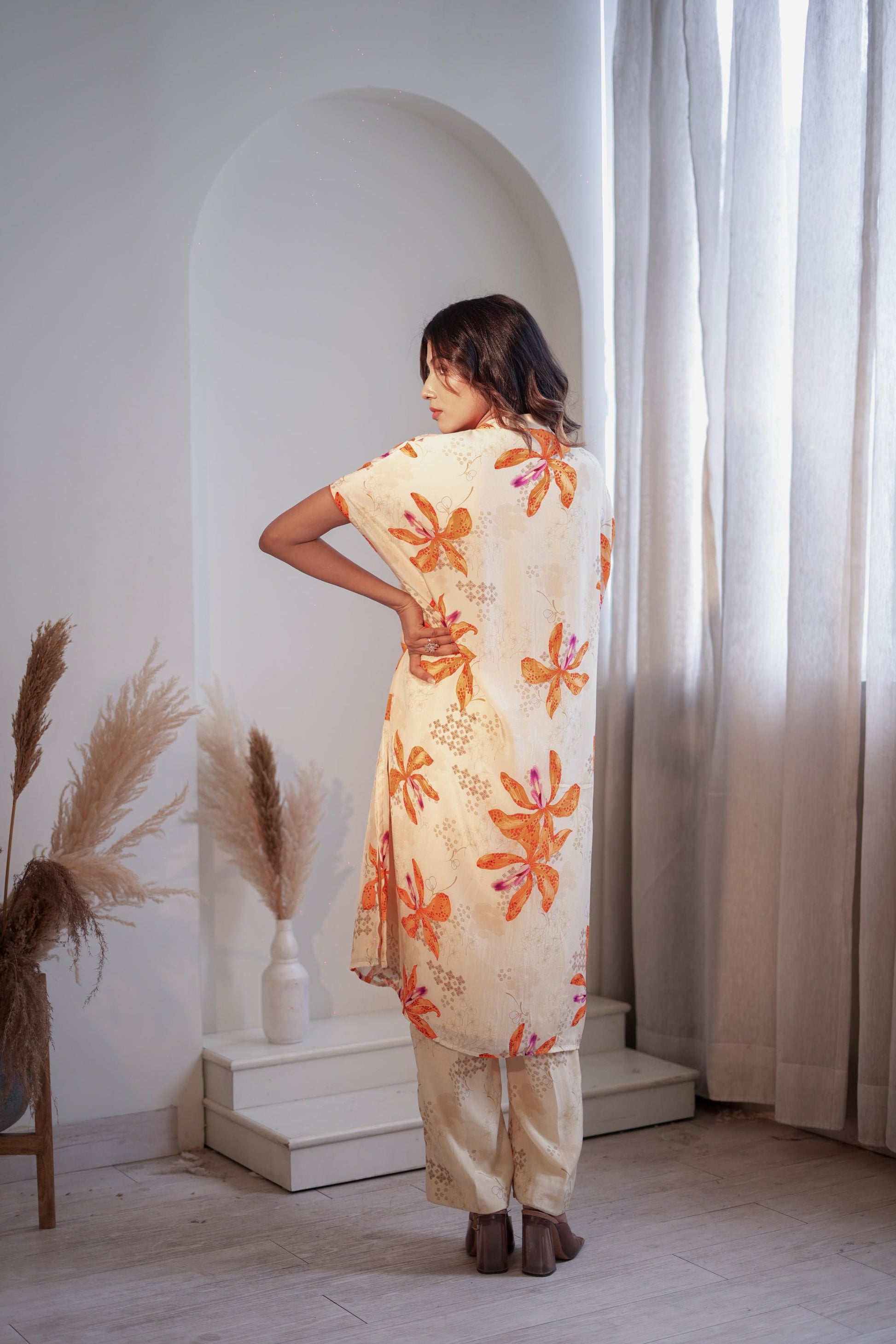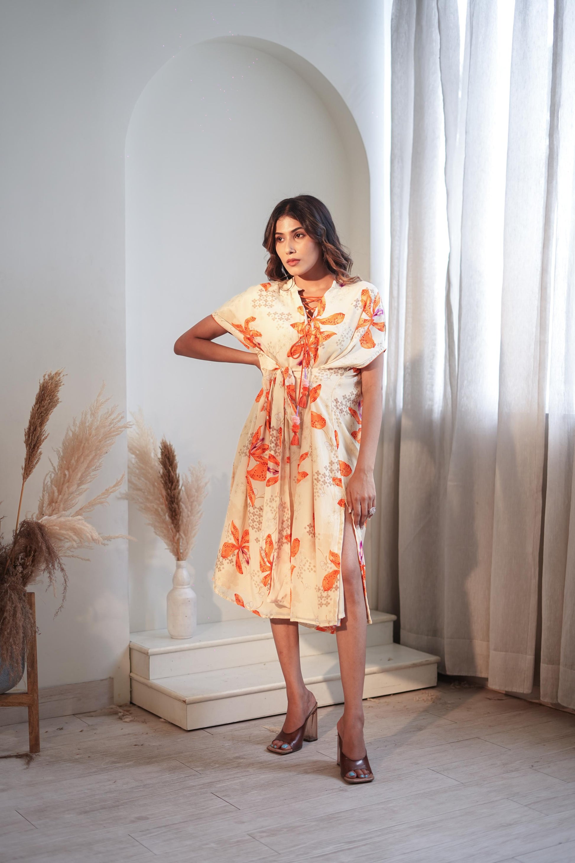 A stylish kurta with side slits and tie-up belt creates a flattering silhouette. It blends traditional elegance with modern fashion, offering comfort, movement, and a chic structured look.
