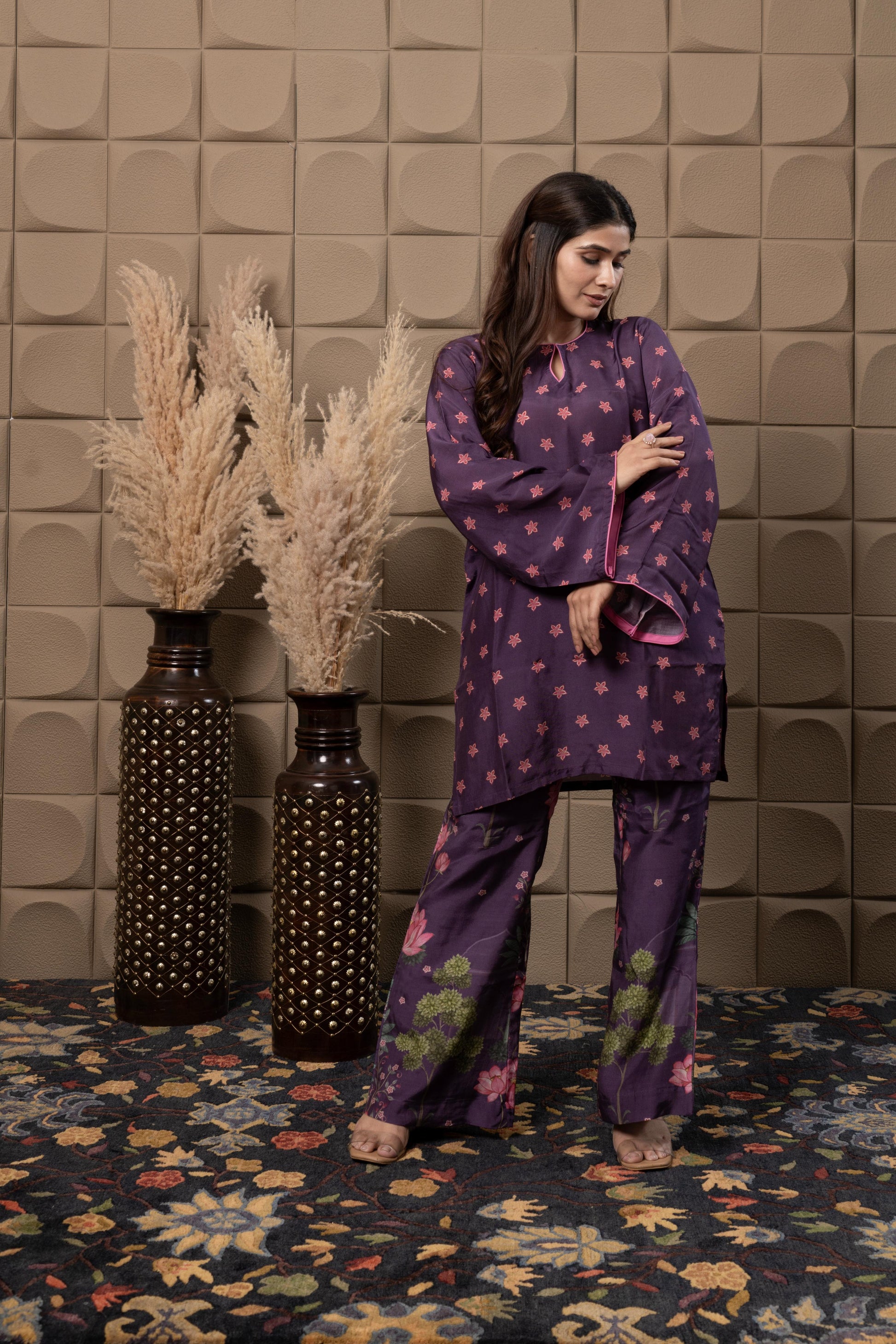 Trendy co-ord set featuring elegant bell sleeves paired with eye-catching printed flared pants. Perfect for making a statement with minimal effort, blending comfort with bold, boho-chic vibes.