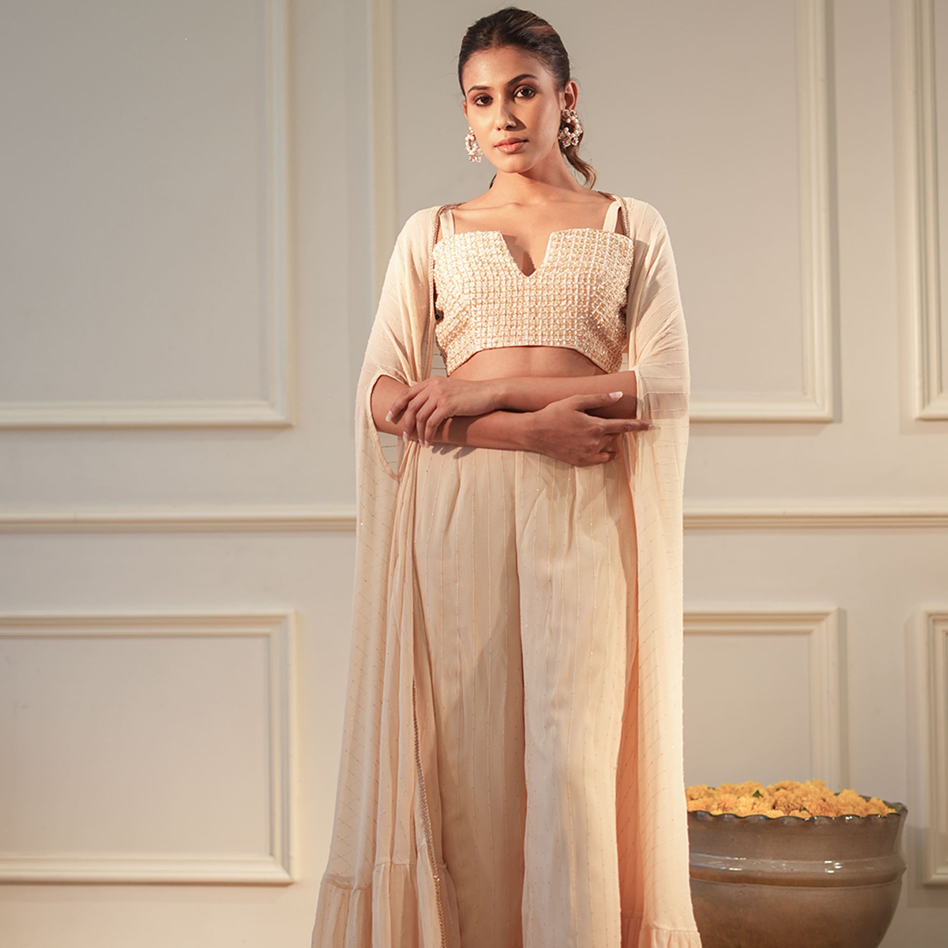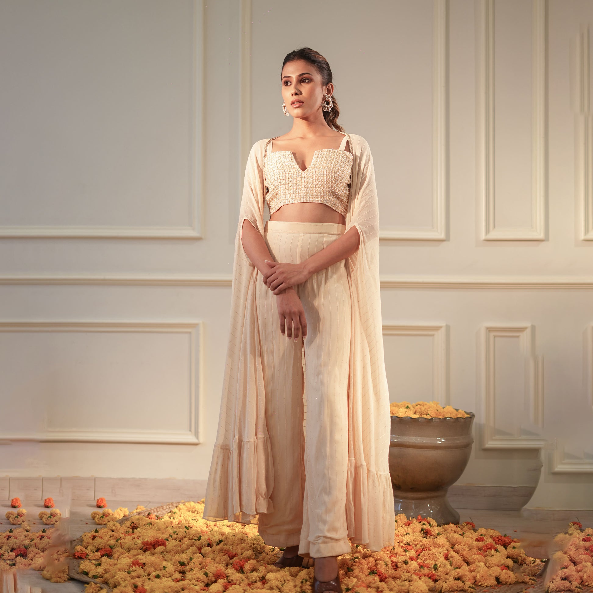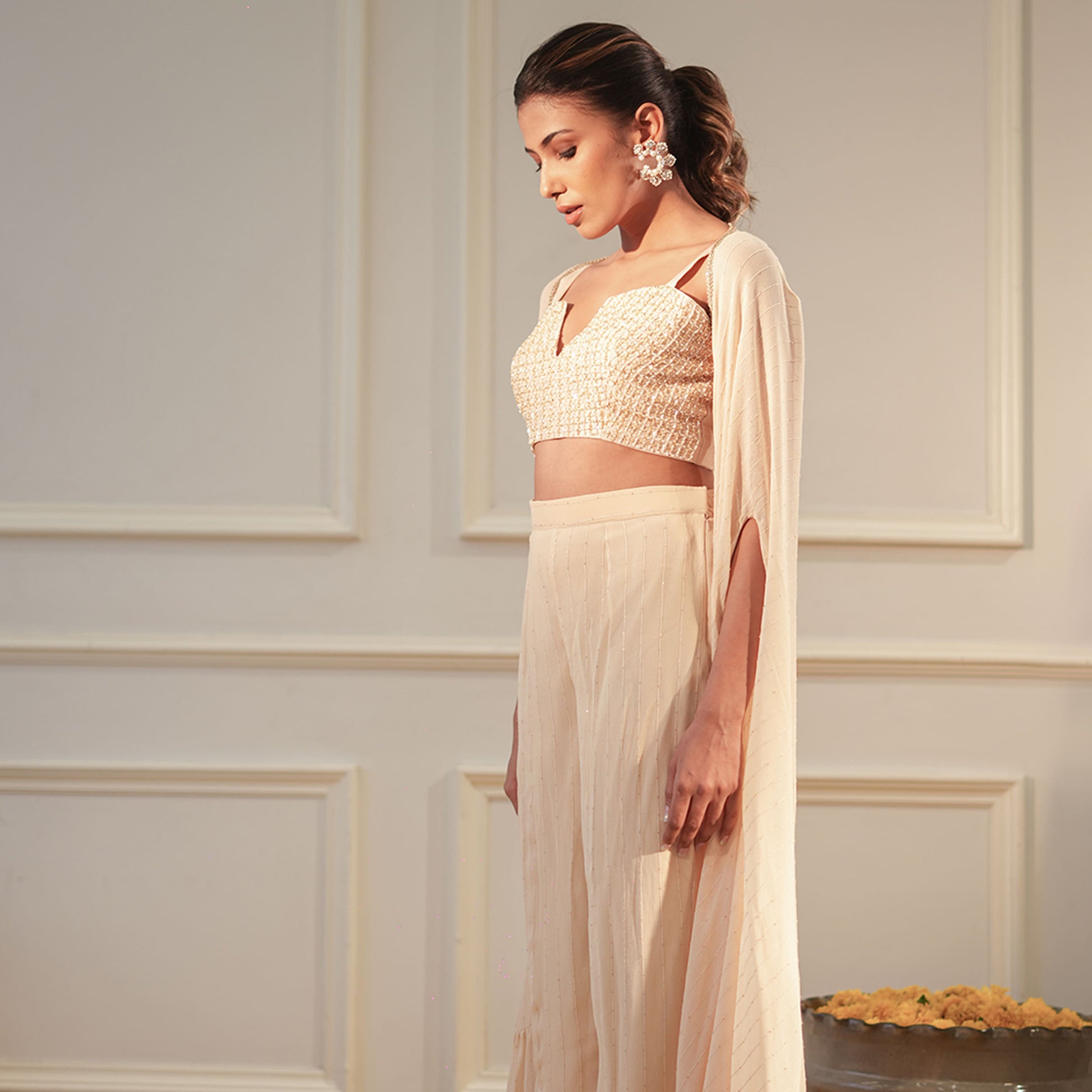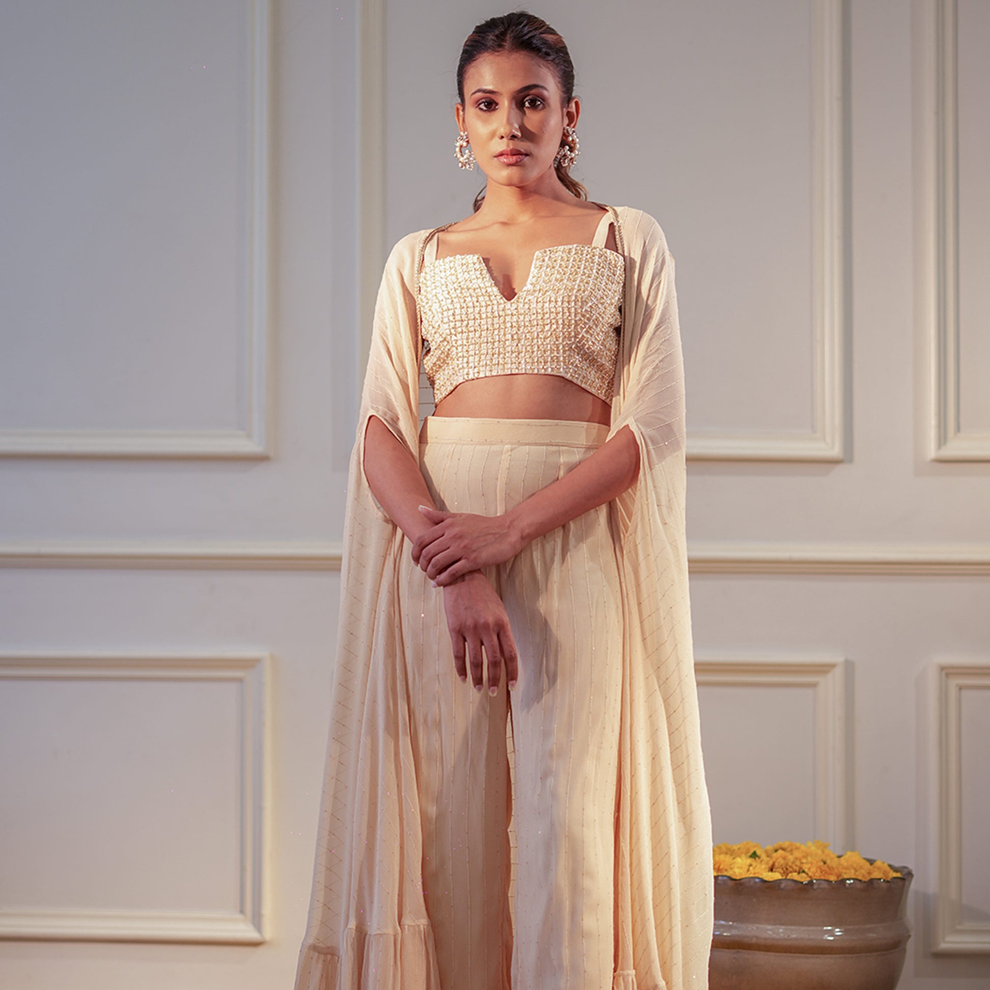 -Fabric: Cape & pants: Sequence georgette, Blouse Dupion silk